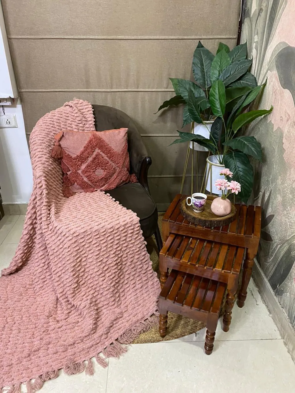 Sheesham Wood Nesting Tables Set of 3 Stools for Decor & Living Room