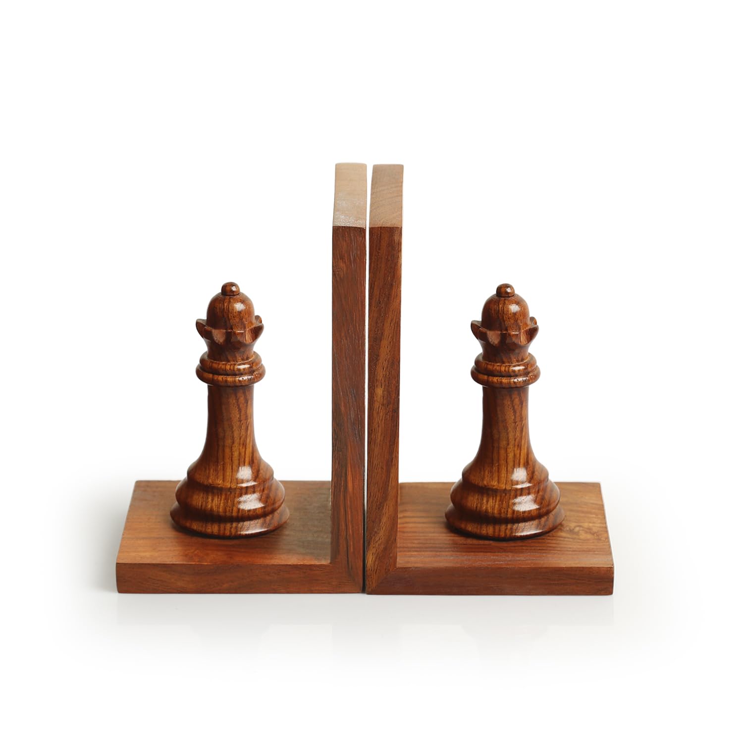 Sheesham Wood Chess Queen Bookends for Home Decor