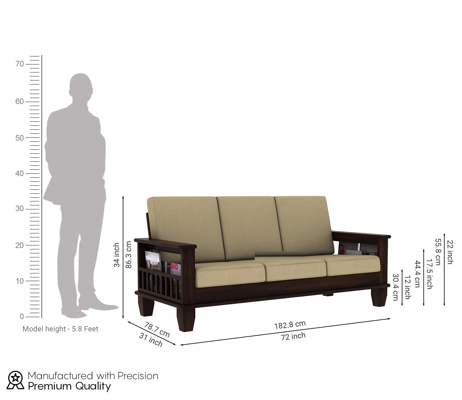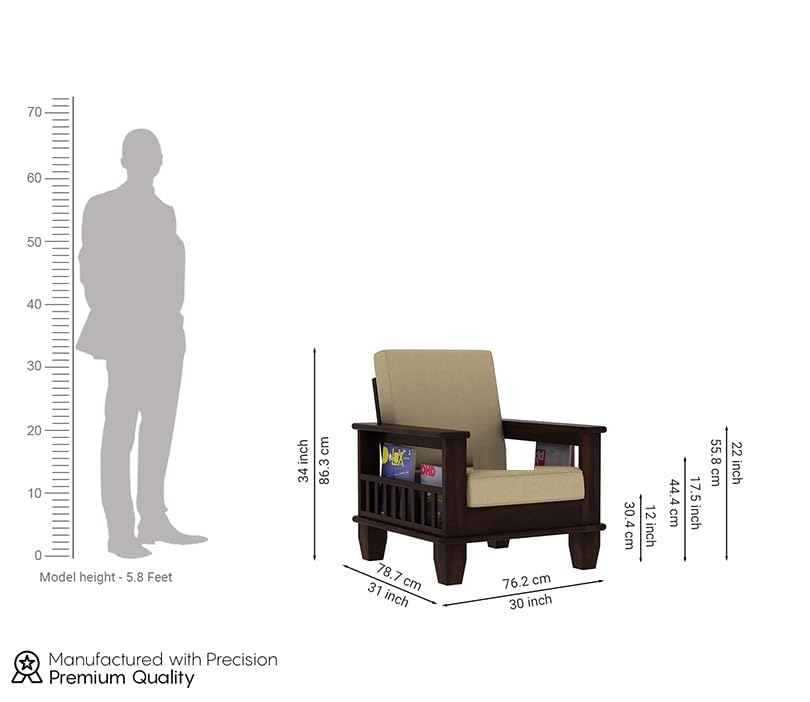 Elevate your living room with the RENEWITURE 5 Seater Sheesham Wood Sofa Set (3+1+1) in a stunning walnut finish, crafted for comfort, style, and durability. This solid wooden sofa set features a strong frame made from premium Sheesham wood, offering long-lasting quality and timeless appeal. The set includes 40-density cushions with 5-inch thick seats and 4-inch thick back cushions, upholstered in soft fabric with removable zip covers for effortless cleaning. Functional side pockets offer smart storage for books, remotes, and more. Ideal for family gatherings, home offices, or formal sitting areas, this 5 seater wooden sofa set perfectly balances aesthetics and comfort for modern Indian homes.