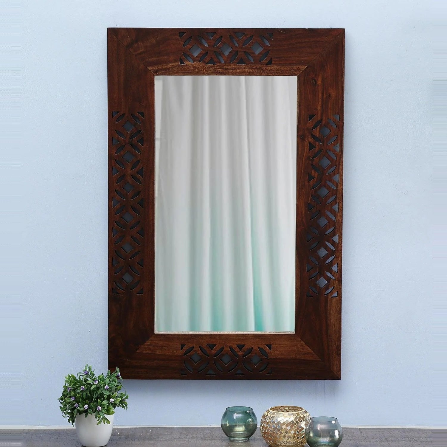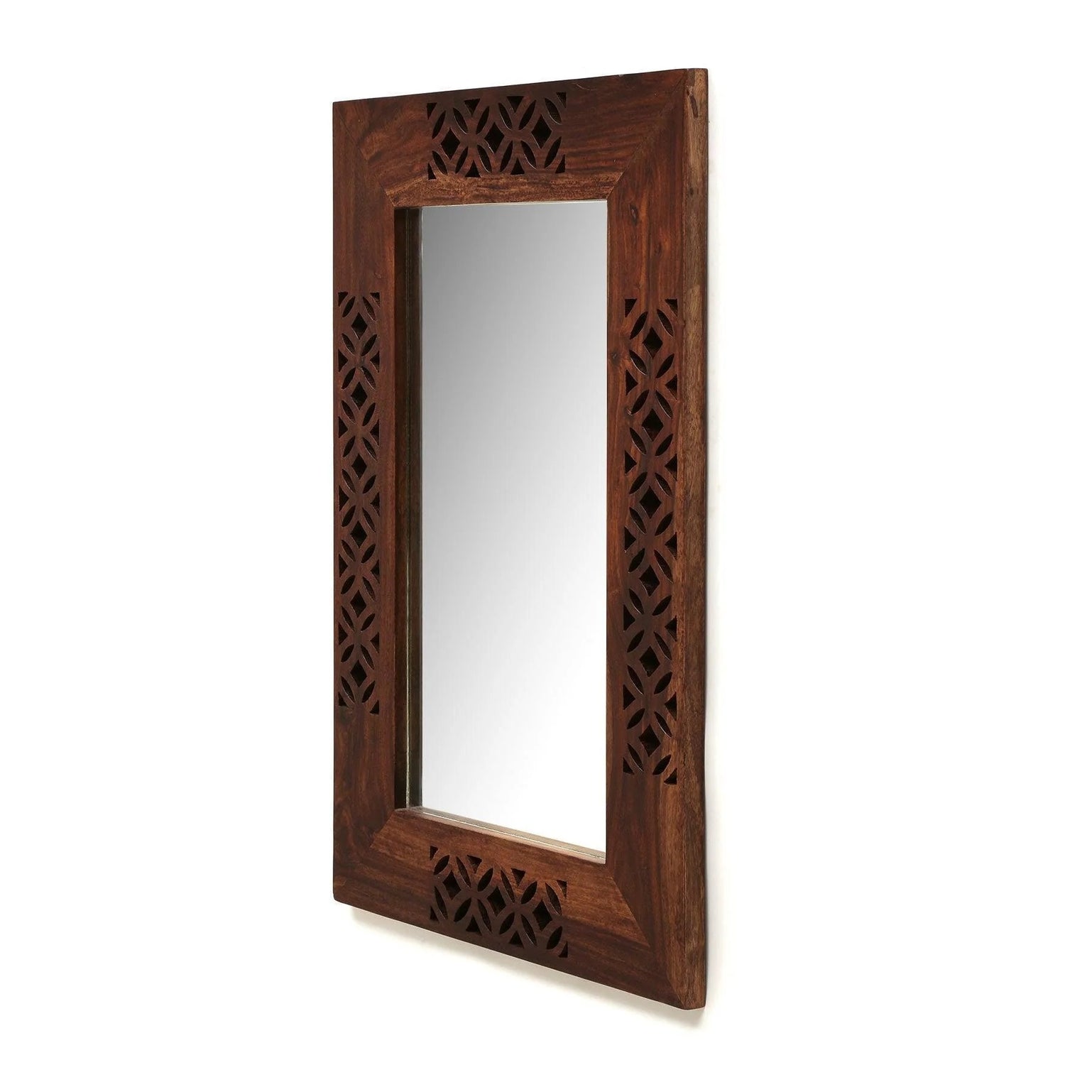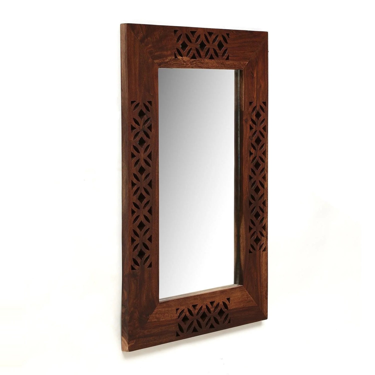 Enhance your home décor with this premium Sheesham Wood Wall Mirror, designed with an elegant hand-carved frame and smooth natural finish. This beautiful wooden wall mirror for living room, bathroom mirror, and bedroom dressing mirror adds both style and utility to any space. Crafted from solid wood, it works perfectly as a decorative wall mirror, full length mirror, hallway mirror, or modern wooden mirror frame for home interiors.