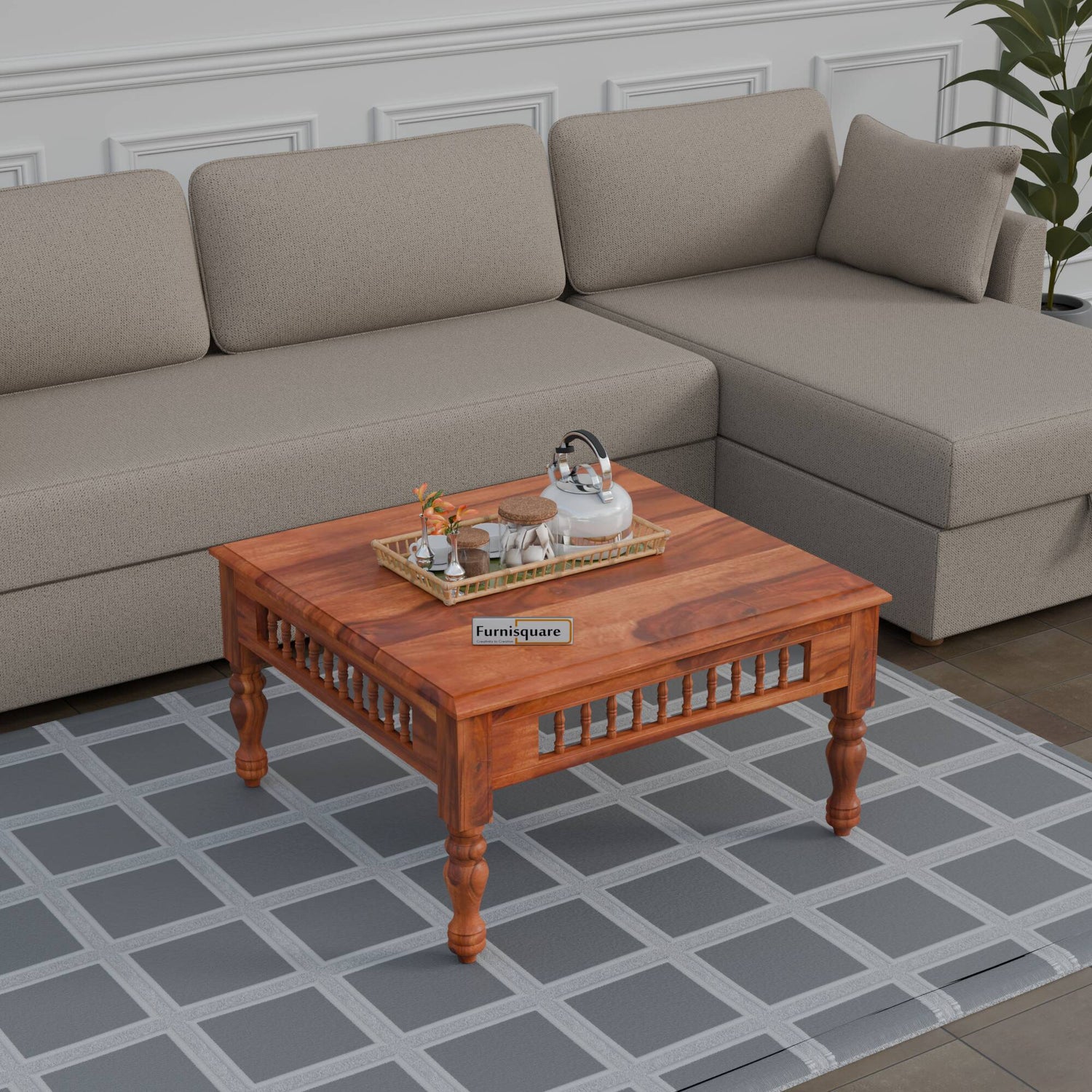 Bring timeless elegance to your living room with this handcrafted solid wood coffee table. Featuring a smooth polished surface, spindle-style side detailing, and sturdy turned legs, it blends durability with classic charm. Perfect for serving tea, coffee, or displaying décor, this versatile wooden coffee table enhances both modern and traditional interiors with its rich natural finish.