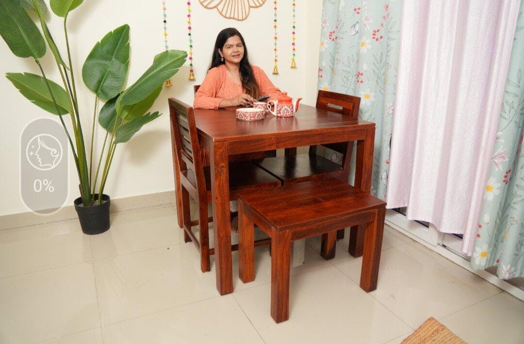 Upgrade your home with our premium wooden dining tables for four people. The collection features a variety of styles, such as the dining table 6 seater wooden and the elegant dining table set with 3 chairs. For a versatile look, choose the dining table with 3 chairs & 1 bench or a big dining table for 4 seater arrangements. Crafted with high-quality materials, including teak wood and Sheesham wood, these dining sets provide durability and timeless appeal for any dining space